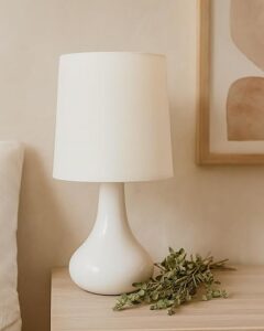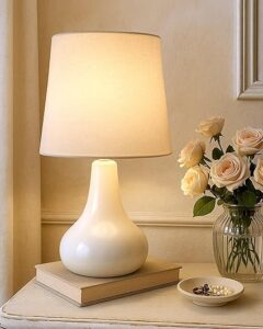 Homesake® Modern Small Ceramic Table Lamp, Warm Light Classic Bedside Desk lamp for Living Room Bedroom Dining, Restaurant, Farmhouse Nightstand Study Lamps with Fabric Shade (White)