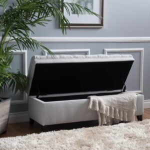 FUUBA Storage Ottoman, Storage Bench 2 Seater Sofa Upholstered Ottoman Bench with Storage, for Living (Light Grey)