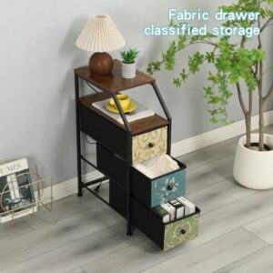 Amazon Brand – Umi Bedside Table with 3 Fabric Chest of Drawers Organizer & Storage Shelf, Sofa Side Table, End Table, Corner Table, Night Lamp Table, Nightstand for Bedroom Living Room (25x47x72cm)