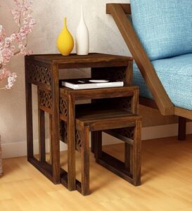 Sheesham Wood Carving Nesting Tables Set of 3 Stools for Living Room Home Wooden Nightstand End Table Stand for Bedroom Hotels – Honey 1812