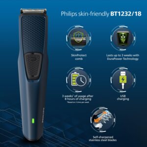 Product – Philips Battery Powered SkinProtect Beard Trimmer for Men – Lasts 4x Longer, DuraPower Technology, Cordless Rechargeable with USB Charging, Charging Indicator, Travel Lock, No Oil Needed BT1232/18